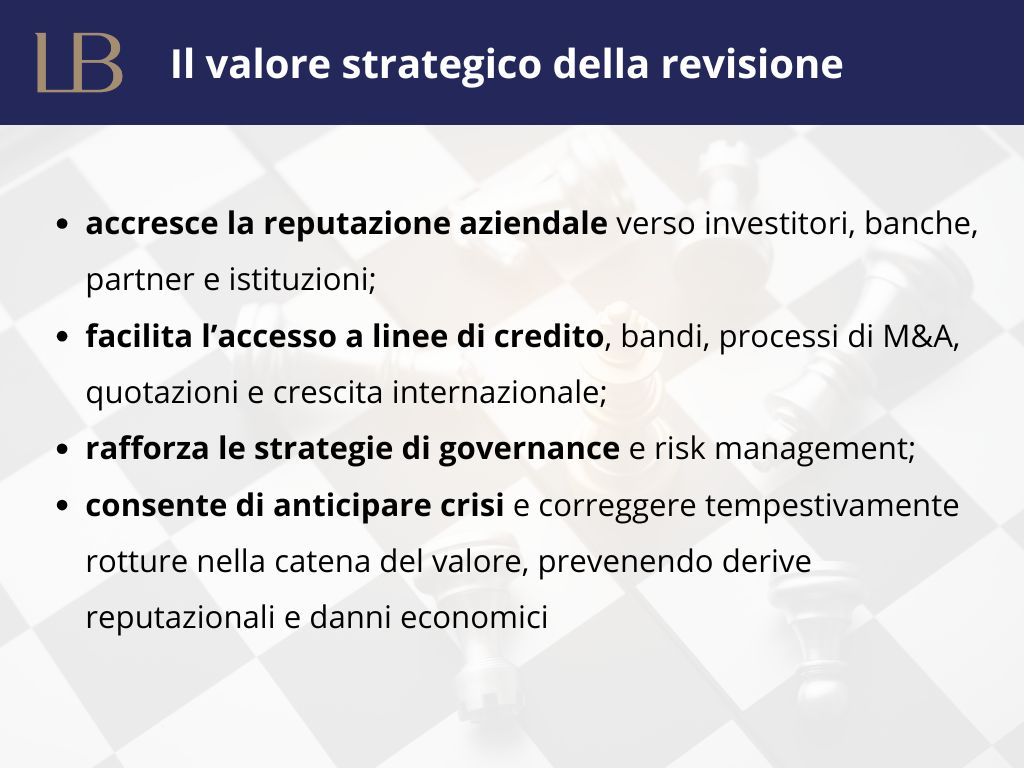 Inoltre, è importante sottolineare la differenza tra revisione “obbligatoria” e “volontaria”: la prima deriva dalla legge, mentre la seconda può essere attivata da società non obbligate per rafforzare la credibilità verso stakeholder o migliorare i processi gestionali/finanziari.