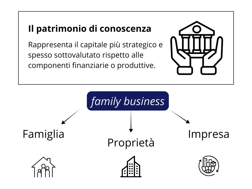 Nel ciclo di vita di ogni impresa familiare, il patrimonio di conoscenza rappresenta il capitale più strategico e spesso sottovalutato rispetto alle componenti finanziarie o produttive. Questo patrimonio non si limita a saperi tecnici o a soluzioni operative, ma include regole non dette, codici di comportamento, strategie di relazione con il mercato, reti informali e cultura d’impresa, maturate nel tempo dal fondatore e dal nucleo originario. Senza un'adeguata strutturazione, questa ricchezza rischia di disperdersi nella transizione, minando continuità e competitività all’arrivo della nuova generazione. Il controllo di gestione svolge qui un ruolo di ponte tra la conoscenza personale e il sistema aziendale: l’obiettivo non è solo trasmettere dati, ma anche integrare valori e logiche operative in processi condivisi e accessibili.