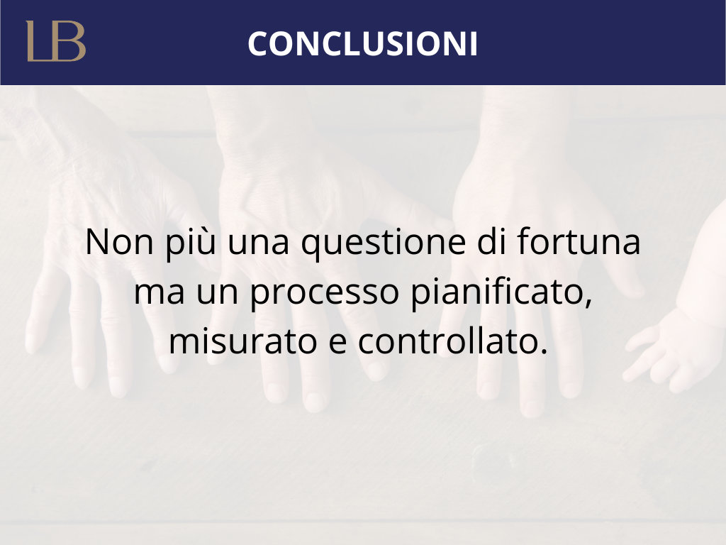 Il passaggio generazionale non è più questione di fortuna ma può diventare un processo pianificato, misurato e controllato. Il controllo fornisce gli strumenti per trasformare questa sfida in opportunità, garantendo che il patrimonio costruito dalle generazioni precedenti si moltiplichi per quelle future. In un'economia competitiva e incerta, questa garanzia rappresenta un vantaggio competitivo inestimabile che distingue le aziende destinate a prosperare.